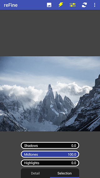 reFine presents a new technique for performing selective sharpening, detail enhancement and edge aware smoothing useful for removing skin blemishes. Using high-quality edge preserving filtering, there are considerable speedups and memory savings over existing methods. Our approach decomposes the image into three detail layers: course, medium and fine. Each of the detail layers can be manipulated separately in various ways, for instance, sharpening or smoothing. Add to that Shadow, Midtone and Highlight adjustments and you have quick isolation of image features for selective filtering.